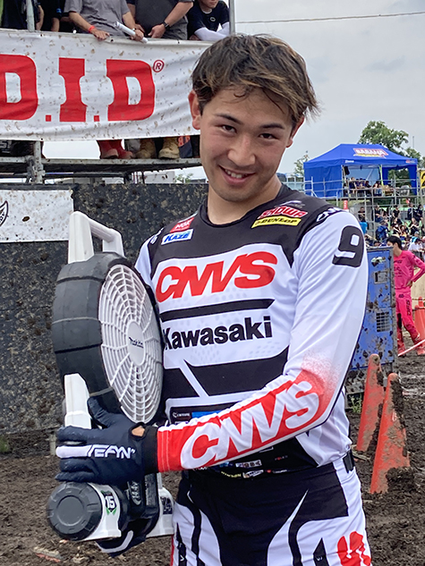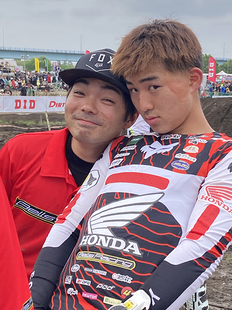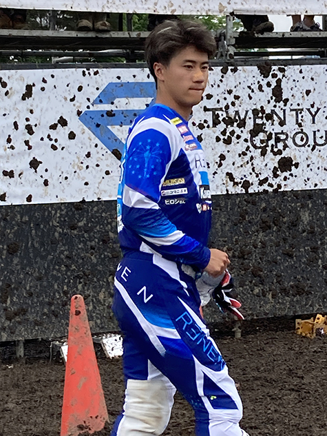 中島選手と同じく開幕前にニュージーランドでトレーニングされた田中選手。感想を伺うと「楽しい2ヶ月過ごせて楽しくモトクロスができて…なんですけど、まあレースがラスト1ヶ月の時は悔しい気持ちしかなくて、レースを終えて嬉しいとかっていう気持ちはなかなか経験できずに終わったので、楽しいトレーニングだったんですけど悔しい気持ちとか学ぶことが多くて。そうですね悔しかったですね」「NZでは2ヶ月ほぼ一緒で。寝る部屋は違ったんですけど夜寝るまでの時間とかは漱也君の部屋にいて、一緒にテレビ見たりYouTube見たりとか。モトクロス面では去年のチャンピオンでもあるんで学ぶことたくさんで。漱也君から学べることは沢山で、トレーニングからライディングの考え方みたいなのも学んで、奪えるものは奪いたいと思っていたのでそこをたくさん吸収させてもらいました」と充実したシーズンオフだった模様。今シーズンについては「シリーズチャンピオン獲得を目標に毎戦毎ヒートトップ争い、トップで、まあ表彰台に登れるように取り組んでいきたいと思ってます」「今シーズンは笑顔を多めで行こうかなと思ってて。去年からそうなんですけど、ネガティブになる傾向があって、それをちょっとなくしていこうかなと。ネガティブになることもあると思うんですけどそれをうまく自分の中でコントロールして、笑顔は忘れずに。結果はあんまり良くなくても笑顔で次のヒートに向けて準備するみたいな系でいこうかなと。今年の田中淳也はそういう系でいこうかなと思ってます。」とおっしゃってました。実際、前半戦でお見かけした田中選手、笑顔が多かったように思います。そんな田中選手、第3戦では初のヒート優勝「1つ目の目標ではありますが、IAに上がって4年かかったヒート優勝を取れて、ゴールした瞬間はほんとに最高でした」と喜びを語られました。「残り3戦しかないですが、まだまだチャンピオンの可能性はあると思います!毎レース集中して、勝ち星を増やしていく為にも、スピードアップテクニックアップが今自分に必要だと思っています!」「今年はモトクロスだけじゃなくて、いろんな事をやらせてもらって楽しく過ごせてます。気持ちの面でもその時々を楽しむ事で、スッキリさせながら感謝の気持ちを忘れずに前を見て、後半戦に挑めたらなと思ってます!」と後半戦への意気込みを語られた田中選手、この夏はアメリカでトレーニング中。たくさんの経験を重ねて地元名阪での後半戦スタート、きっと活躍してくださるはず!