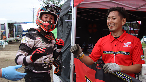 関東大会決勝ヒート2ゴール直後の小島選手。素敵な表情でパドックに戻ってこられました!「ただ純粋に走りたいから走る」、小島選手には、その場所が全日本モトクロスというだけで「僕が今走っているのは、皆さんが趣味でバイクに乗っているのと同じ感覚なんです」という言葉が改めてこの写真から伝わってきますね。
