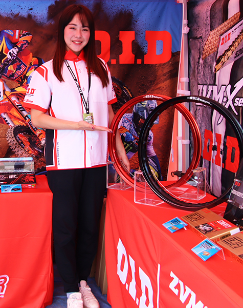 田中葵:大同工業株式会社、D.I.Dはチェーンで有名だと思うのですが、実は「アルミリム」もやっていたり「鉄リム」もやっていたり、最近では「ハンドル」なども純正に採用されています。是非お近くのバイクパーツを見てみてください!製品に関するご質問、ご相談もお受けしています。ぜひD.I.Dブースにお立ち寄りください。